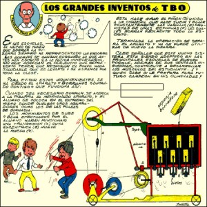 - ¿HEU VIST AQUELL ANUNCI ON UNA CANICA AL CAURE FA MOURE UN DESPERTADOR??? ¿heu vist el “efecto mariposa” al hormiguero? A VEURE SI SOU CAPAÇOS DE FER PALANQUES, POLITGES, PENDENTS…. i treure una màquina inventada per vosaltres. Amb el que porteu farem una exposició.A més heu de fer un mica de disseny i explicació del funcionament.Tipus los Inventos del TBO.Demaneu ajut als pares i mares, us ho passareu molt bé.