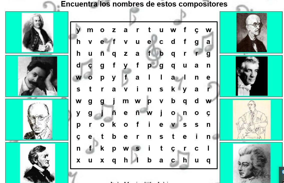 ET PROPOSO DE FER UNA SOPA DE LLETRES AMB ELS NOMS DELS COMPOSITORS