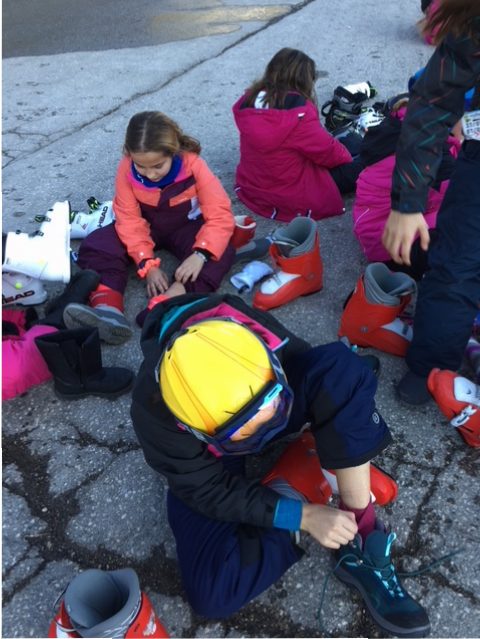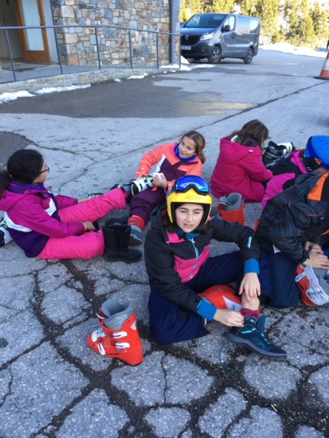 Vam tornar i vam berenar napolitanes de crema. Després ens van deixar triar si voliem jugar amb la neu. Les nenes hi vam anar i els nens es van quedar jugant al futbolín.