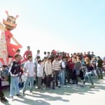 Quasibé 100 joves recentment arribats a la nostra ciutat es van trobar a la platja de Badalona per fer la seva particular aportació a les festes de Maig ‘ 12, i també vam gaudir de la col·laboració d’uns alumnes de l’Ala Oberta de Lestonnac.