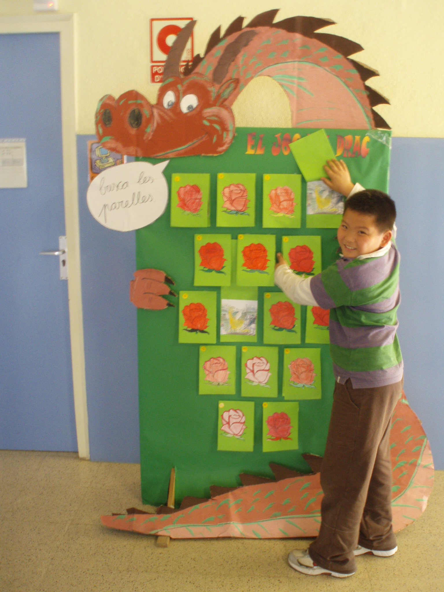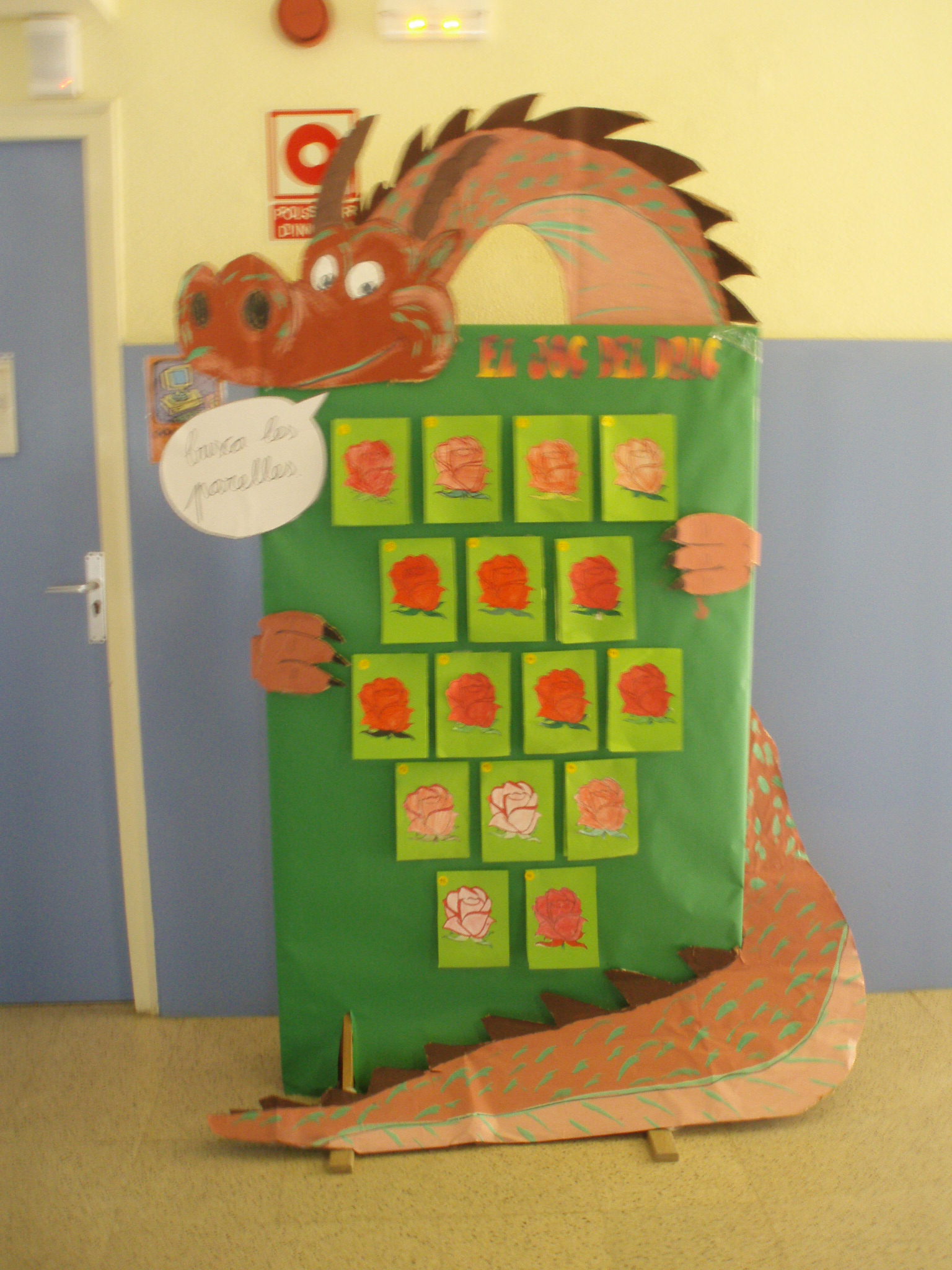 Aquest any hem tornat a fer un gran drac a l’entrada de l’aula d’acollida. Aquest any és un drac interactiu. Un drac que ens proposa un joc “EL JOC DEL DRAC”.