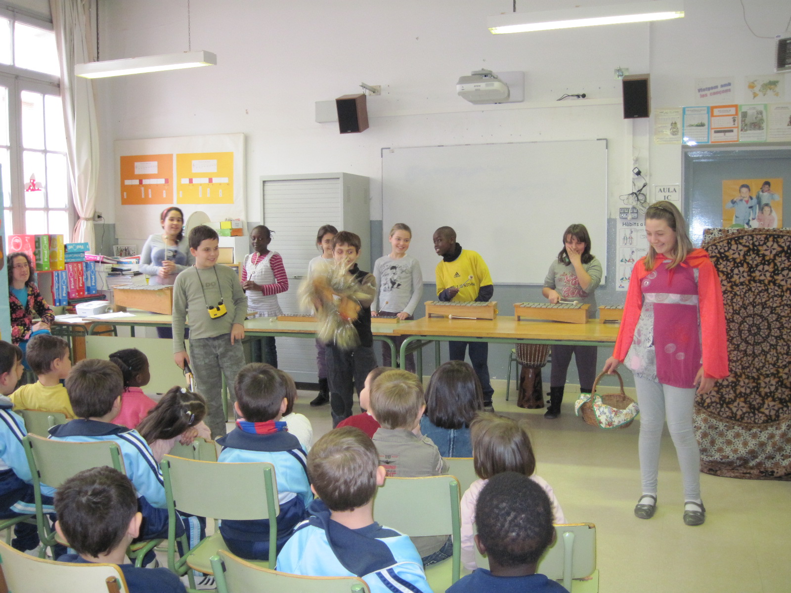 Els alumnes de cicle superior van delectar als alumnes de educació infantil del nostre centre amb la representació del con te de la caputxeta vermella .