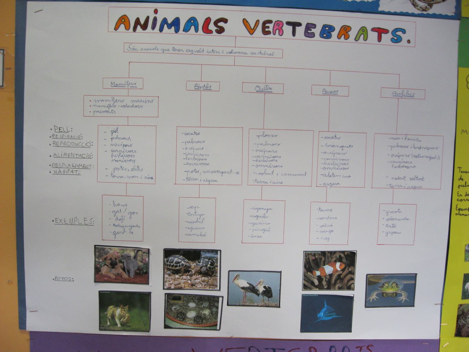 Els/les alumnes de Cicle Mitjà tenim el nostre raconet del Coneixement del Medi. Durant el primer trimestre, entre altres activitats realitzades fora i dins de l’aula, hem fet uns projectes sobre els animals vertebrats i alguns experiments relacionats amb els canvis de la matèria.