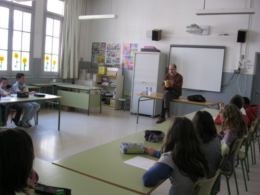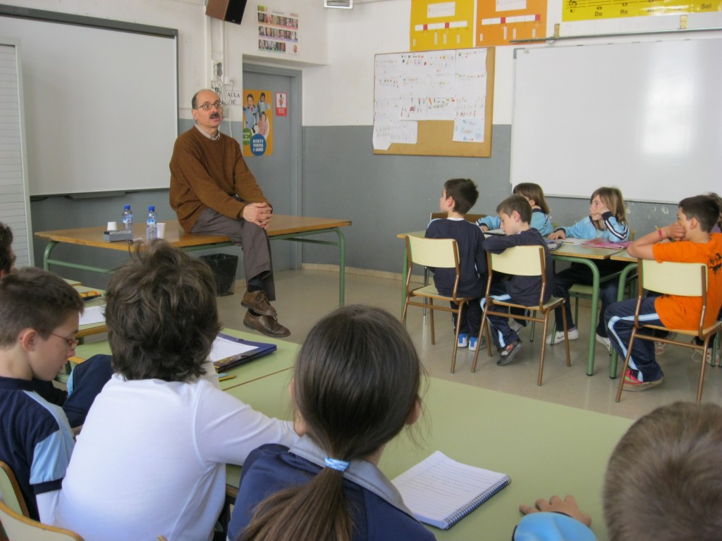 L’alumnat de 5è visita les aules de 4t a fi d’explicar-nos el contingut del llibre : “El llibre d’encanteris de la vella taràntula”, de l’escriptor Jordi Folck que, el dia 8 d’abril, estarà present en la nostra escola.