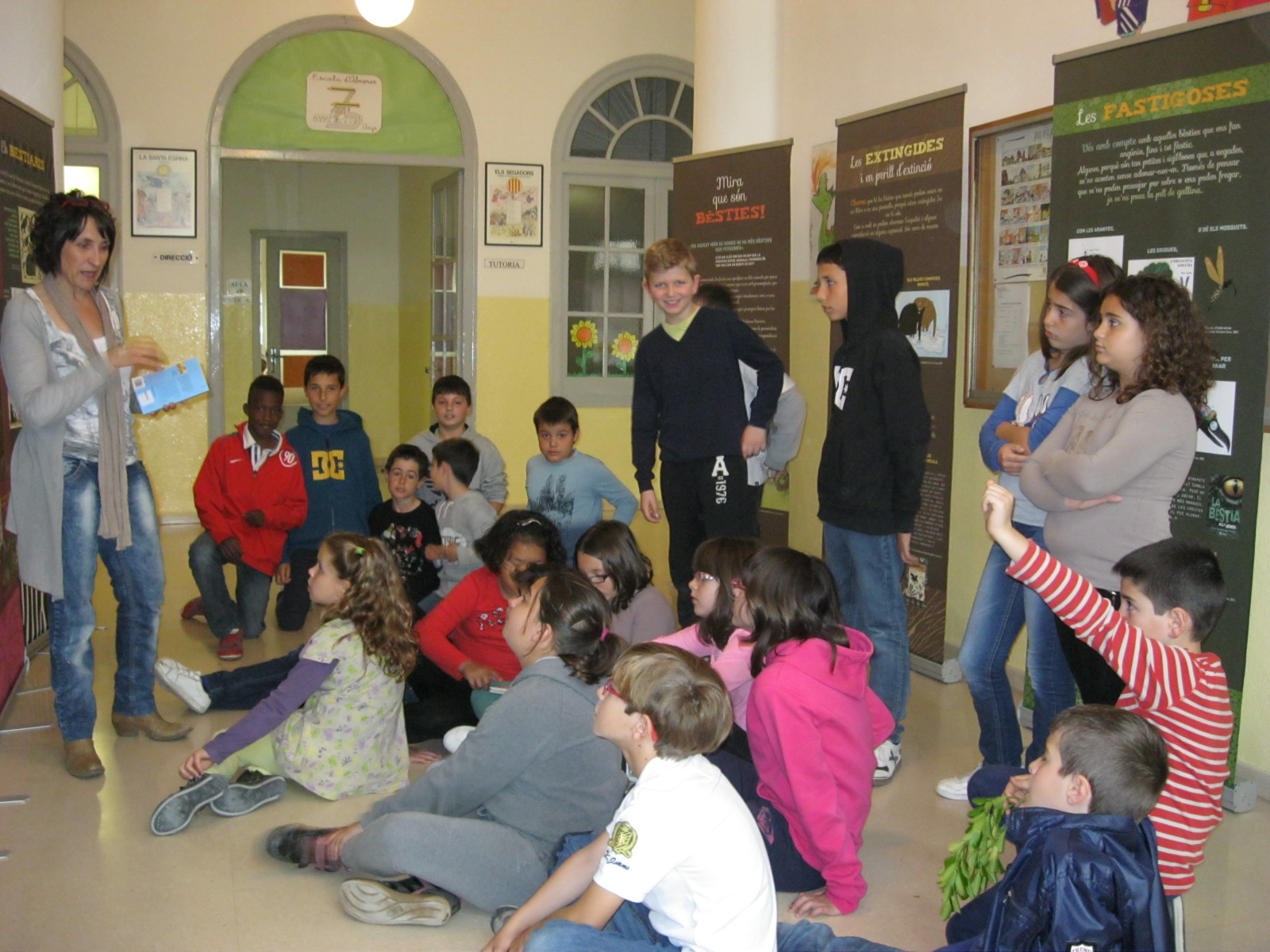 Els nens i les nenes de la classe del dofins de P4 vam anar a veure l’exposició “Mira que són bèsties” que durant unes setmanes vam tenir a la nostra escola.Vam conèixer els animals fantàstics, els que fan por, els més grans,els fastigosos.. però els que més ens van agradar van ser els de la granja.Després vam escoltar els contes que ens explicaven els senyoretes i vam riure moltíssim amb el conte “L’ànec va en bici”.