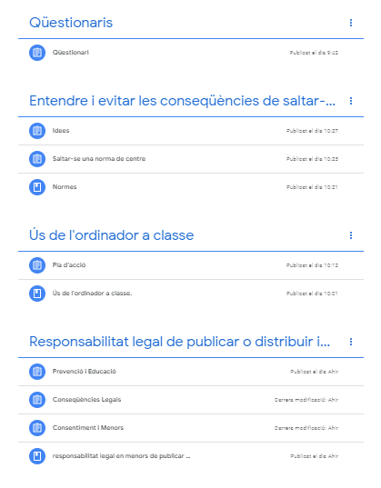 Hem preparat un Classroom amb activitats. El meu company l’ha fet per als alumnes de l’ESO i jo per als de postobligatòria.