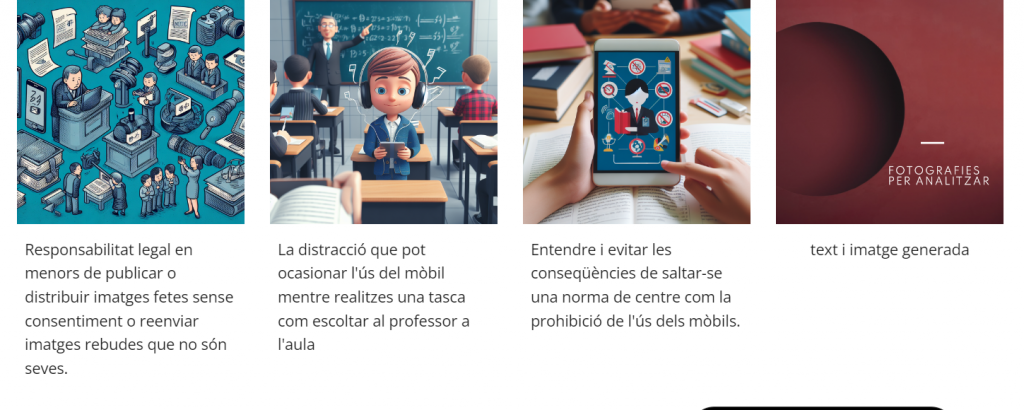 És important entendre la responsabilitat legal que tenen els alumnes en publicar o distribuir imatges sense el consentiment adequat. Segons la llei espanyola, els menors de 14 anys no poden donar el seu consentiment per a la publicació d’imatges seves, així que és important que els alumnes siguin conscients d’això  Els majors de 14 són ells qui donarien el consentiment.