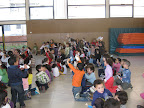 Cada divendres ens reunim totes les 7 classes de Educació Infantil en el vestíbul .Li cantem la cançó:(amb la melodia de “La cucaracha”)escolteu la cançó