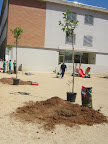 Com el nostre pati és molt assolellat i no tenim cap ombra ens han plantat uns arbres que es diuen “moreres” i que fan molta ombra amb les seves fulles però ara encara són molt petites i les hem de cuidar perquè puguin créixer;cada grup ha triat una i la controlarà i cuidarà!