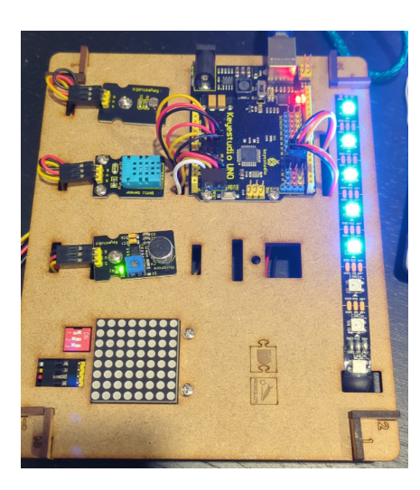 Hem treballat els diferents sensors i com poder-los visualitzar en pantalles. També cal destacar l’ús de la matriu Led. Aquí podeu veure alguns exemples!