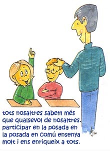 Tot plegat fa, sovint, que la convivència sigui difícil. I aquesta qüestió ens és fàcil d’identificar-la en situacions o posicions externes a nosaltres, però ens costa més reconèixer-la quan afecta a les nostres decisions i comportaments respecte als altres. He observat que en el nostre col·lectiu, el del professorat, es dona una convivència formal, poc creativa i participativa; en molts casos hom està gelós de la seva parcel·la, de la seva manera de fer, i sigui pel motiu que sigui li costa compartir i buscar complicitats amb els companys, i podria ser tan enriquidor!, en l’àmbit específic de la matèria, en com aconduir una classe, amb els materials que tenim a l’abast, sobre les dificultats o maneres de relació que ens han donat resultat amb la relació amb els alumnes, etc. Que ens passa? Em pregunto sovint. Ens fa por mostrar les nostres debilitats? Ens fa vergonya? Ja ho tenim tot resolt? Ens fa peresa la feina? Què m’han de dir de nou! El problema és senzill: els alumnes el que han de fer és estudiar més i a classe comportar-se “com Déu mana”. Soc del parer que tot és millorable i que l’experiència dels companys i companyes em pot ser un bon ajut en la meva tasca, i no em fa vergonya perquè sé que és una feina en la que cada dia tots podem aprendre de tots, dels companys i dels alumnes amb els que compartim la tasca d’aprenentatge. Sí, dic compartim perquè considero que tot i tenir, normalment, més coneixements concrets, el que podem fer és proposar, aconduir, orientar, posar a la seva disposició, però l’esforç i l’acció d’aprenentatge l’han de fer ells, i si la compartim segur que faran aportacions que per a nosaltres en molts casos també poden ser una font d’aprenentatge. I en aquest compartir crec que es basa una bona part de la bona convivència entre tots nosaltres. |