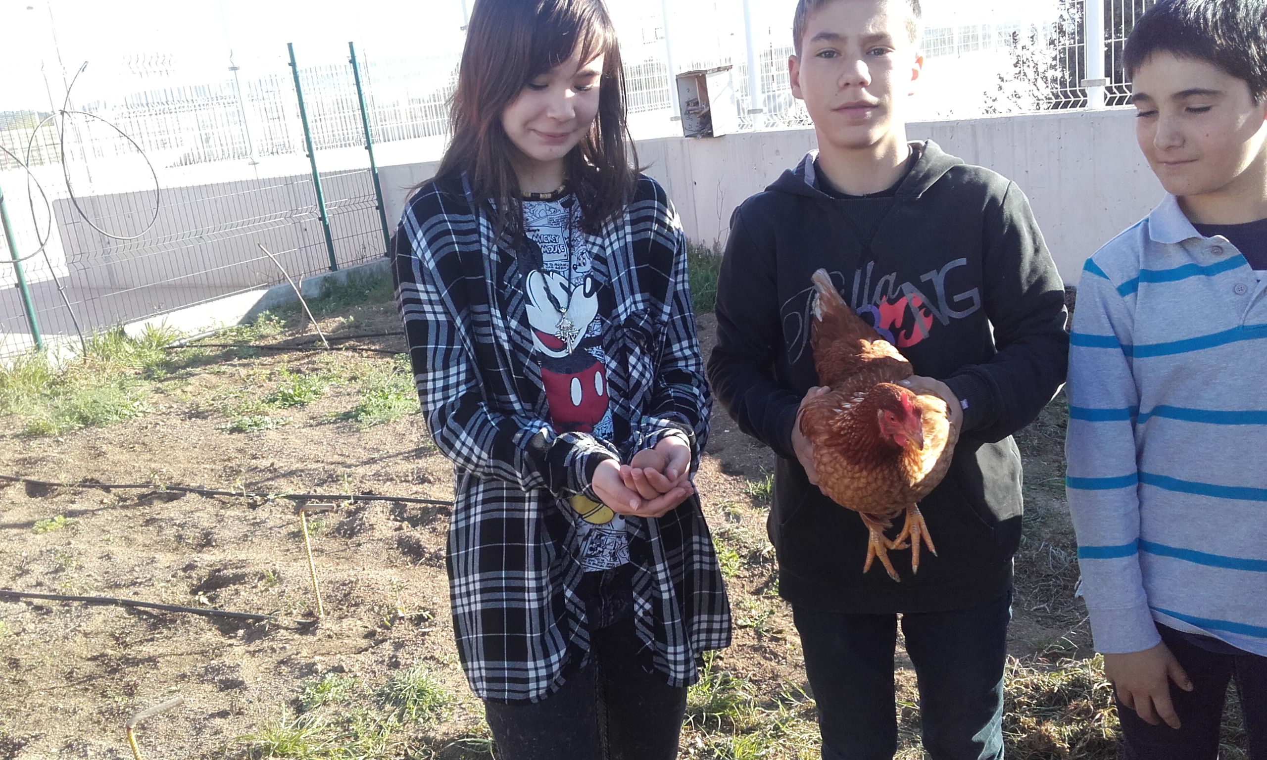 The students from Aula Oberta of ESO 3rd helped us with the project: they designed and built a henhut, and placed it in the school garden.