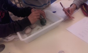 Passada una setmana hem vist el resultat i els hem discutit: quines diferències hi observeu? per què està tou? per què s’han fet més grans? Parlem d’osmosi, parlem de la reacció química entre el vinagre i el carbonat de la closca. I per dins, què creieu que haurà passat? Elaborem hipòtesis.
