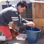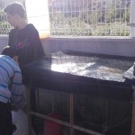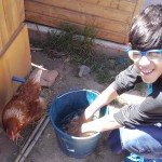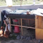 Now, we have to take care of the hens. On Mondays, the students of Aula Oberta are responsible of cleaning the henhut, collecting the eggs, and feed the hens. On fridays it’s time for the students of 1st of ESO to do the same.