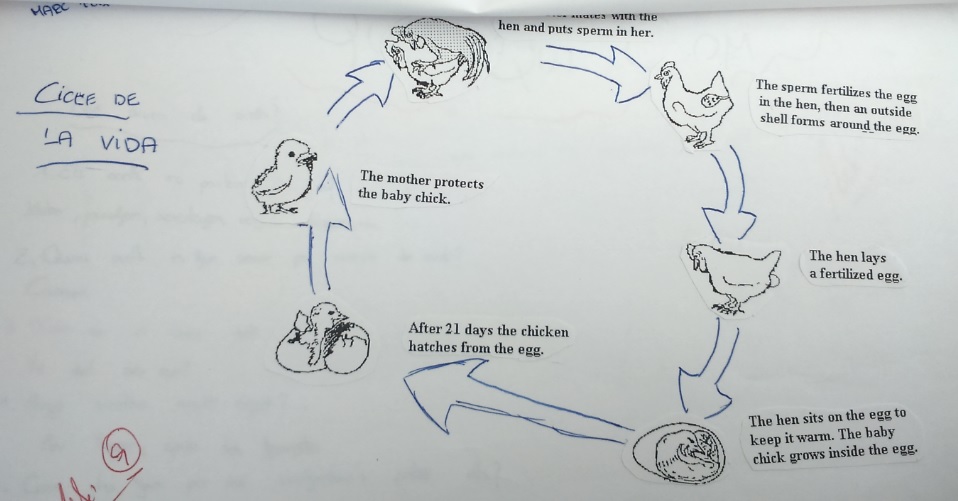 –JENNI: hem après el cicle de vida de les gallines / hem fet experiments amb ous / hem après el nom del material de laboratori / hem après el nom de molts ocells