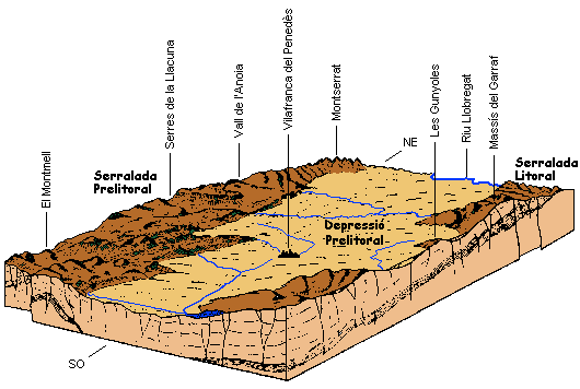 Entre aquestes dues serralades s’obre l’ampla plana que forma part de laDepressió Prelitoral i que és com un gran passadís que ve de les comarques de la Selva i del Vallès i s’obre al mar a la comarca del Baix Penedès.