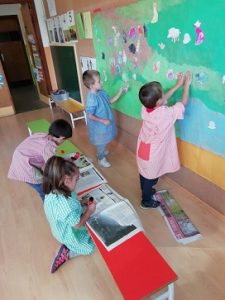 ELS NENS I LES NENES, DE LA CLASSE DELS ESQUIROLS I DELS LLEONS, HEM ANAT A VEURE ELS ROURES I L’ALZINA DE DAVANT DE L’ESCOLA I HEM COLLIT MOLTS AGLANS