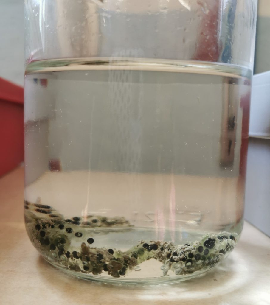 Avui la Laia ens ha portat un pot de vidre on hi havia una mica d’aigua i unes boletes negres! Què és això, ens hem preguntat?