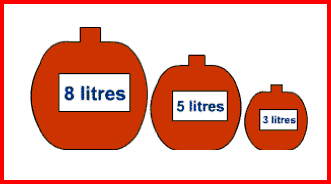 Dos amics tenen una garrafa amb 8 litres de vi del Priorat i se’l volen repartir, com dos bons amics, a parts iguals. Però per mesurar només disposen d’un parell de garrafetes buides de 5 i 3 litres entre els dos.