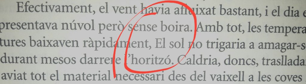 Per últim, en aquesta fotografia, podem veure una falta de puntuació. Potser, l’autor volia posar punt i sense voler va posar coma, o volia posar coma i després va posar majúscula quan hauria d’haver posat minúscula.