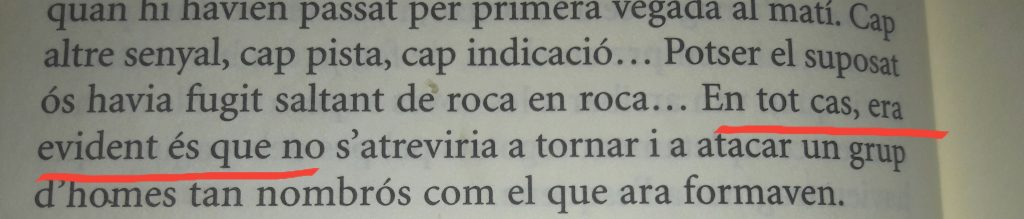 En aquesta fotografia es pot veure aquesta frase: “En tot cas, era evident és que…” la falta està en el verb “és”, la frase hauria de dir: “En tot cas, era evident que…”.