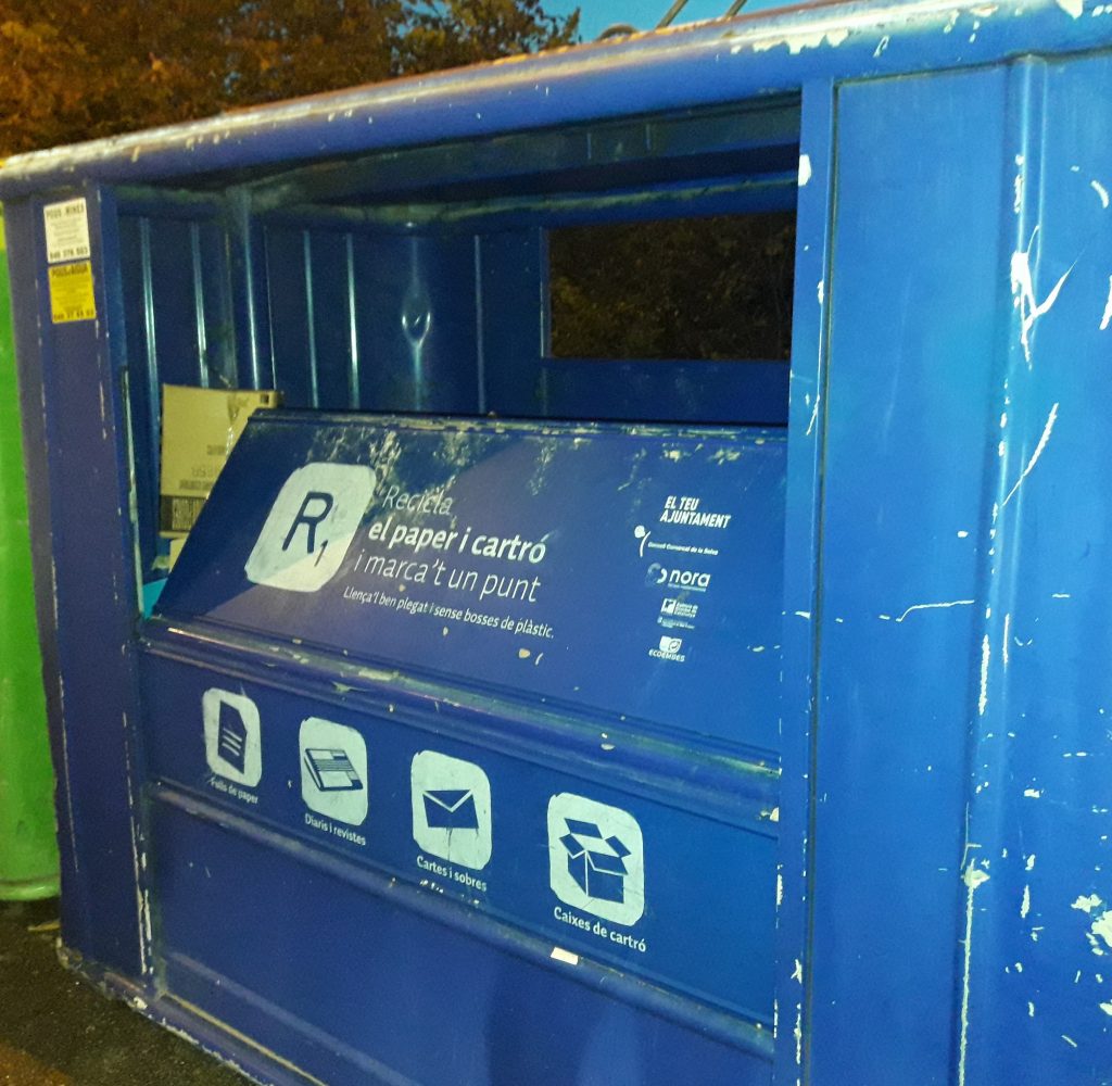 L’altre dia, a la tarda, quan anava a tirar les escombraries als contenidors del meu carrer, vaig veure com el contenidor del paper i el cartró estava trencat pels dos cantons.