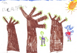 LAS FLOS DA EUCALIPTUS FAN ULO. ALS TRONCS SON GRUSUTS. (ADA, IZAR, ARNAU, ERIC, LUCA, XÈNIA )