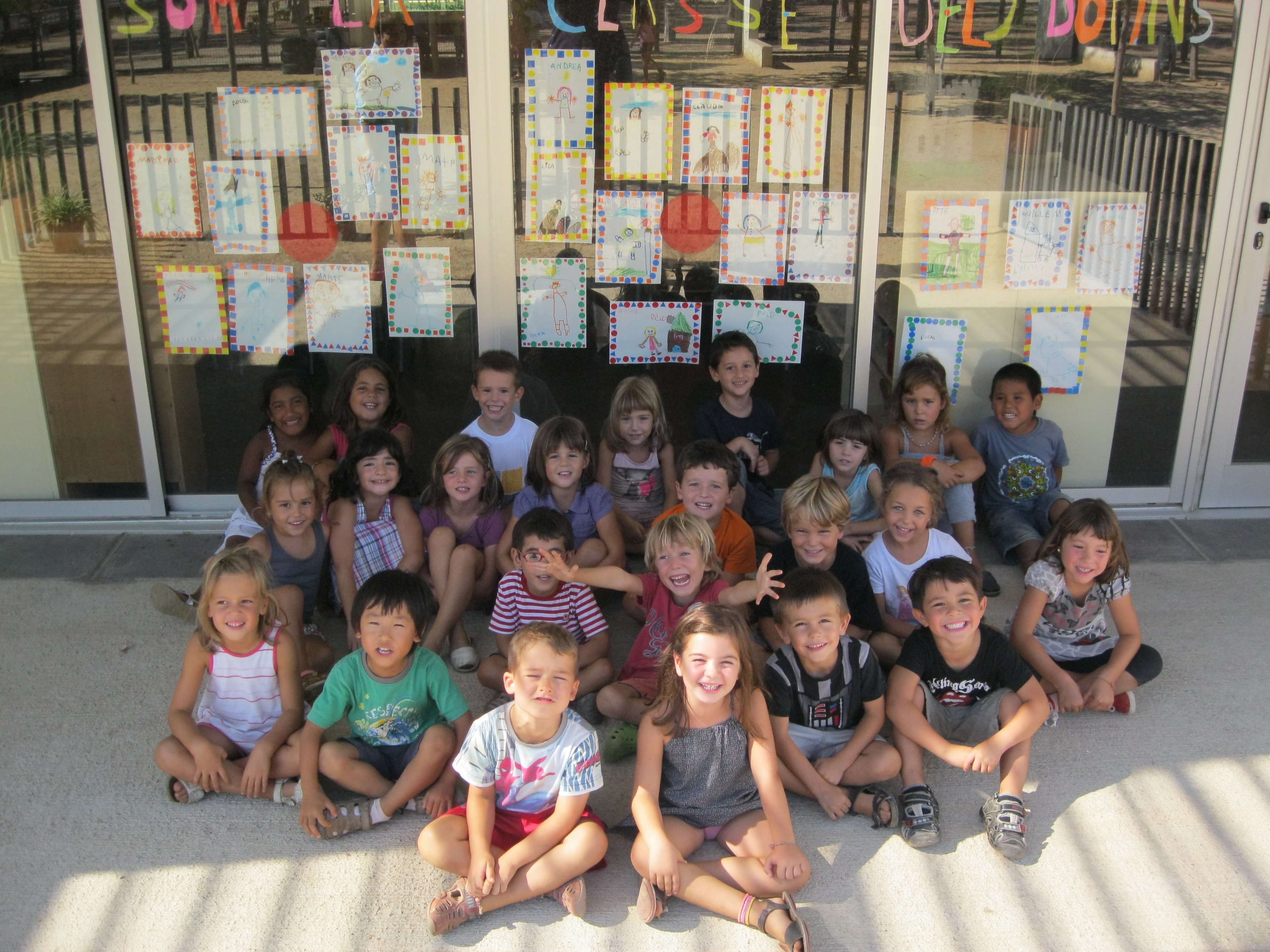 HEM RETALLAT LLETRES DE COLORORINS PER POSAR AL VIDRE QUE DIUEN : SOM LA CLASSE DELS DOFINS!