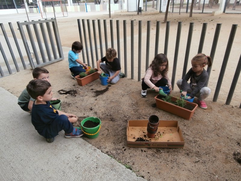 Els nens i nenes de 5è han fet un hotel pels insectes i nosaltres hem plantat calèndules perquè en vinguin mooolts!!!!