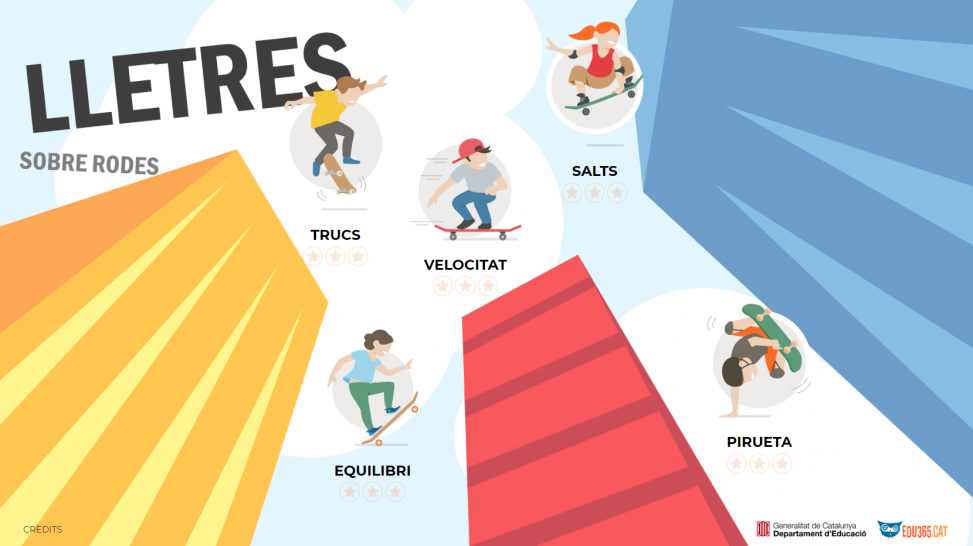 Vine al nostre skatepark i puja al teu monopatí per fer tants trucs com vulguis saltant de joc en joc. En trobaràs una pila; relaciona imatges i paraules per passar una bona estona damunt del teu monopatí!