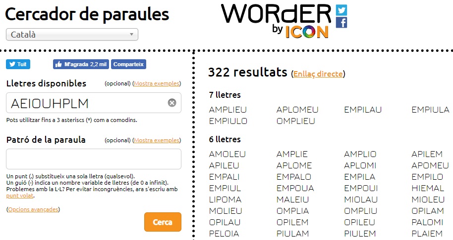 - Una bona eina per a buscar paraules que només tinguin les lletres apreses és el cercador WORDER.