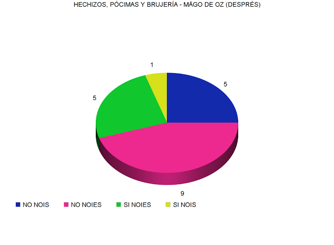 - A les noies són a les que els ha agradat més després d’escoltar la cançó (5 noies), pel que diu la frase “si la brujería es capaz de curarme, ¿dónde la puedo encontrar?”