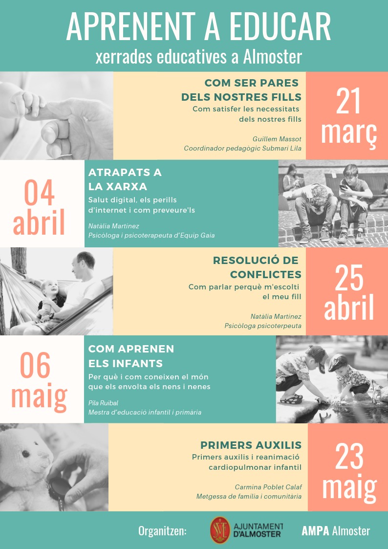 Ja us podeu inscriure a la segona xerrada del cicle Aprenent a educar organitzat per la regidoria de l’Ajuntament d’Almoster i la Comissió família de l’AMPA .