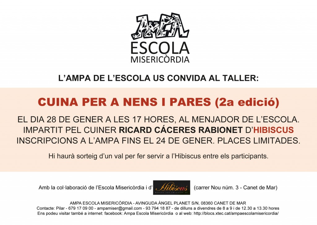MÉS INFORMACIÓ AL FACEBOOK AMPA DE L’ESCOLA MISERICÒRDIA