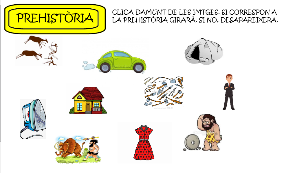 Per escalfar motors i recuperar els coneixements previs fem una activitat a la PDI que ens serveix per situar-nos en les diferencies entre la vida a la prehistoria i als nostres dies.