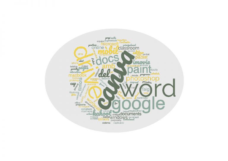 - Un cop el professorat va respondre les preguntes, vam elaborar un núvol de paraules per fer visible quines eren les aplicacions més utilitzades i per tant ser valorades en el repositori d’eines digitals.