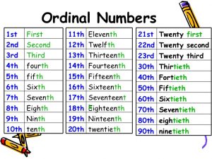 LISTEN ORDINAL NUMBERS http://www.languageguide.org/english/ordinal-numbers/