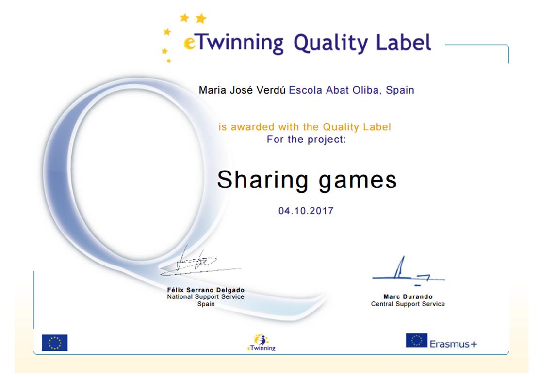 I’m very proud to explain you that our students from year 2 have been granted with an eTwinning National Quality Label for the project run in year 1 called SHARING GAMES.