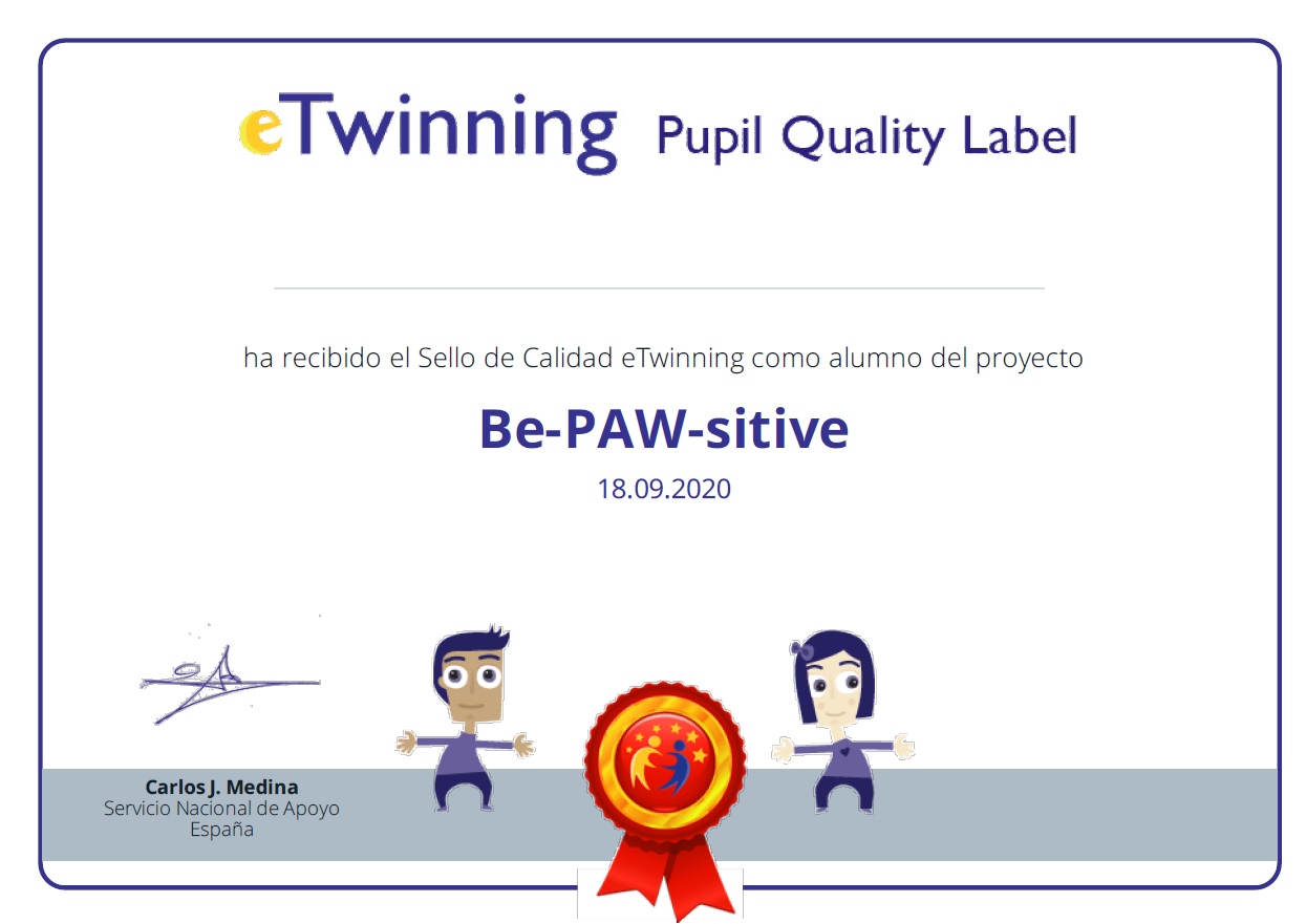 Our Year 4 students have been granted with a National Quality Label for their eTwinning project Be – PAW – sitive, run in Year 3. It has been a well-deserved award. They started the project in the first term following the PBL methodology. However, some activities were changed in order to let children work in collaboration from home during the lockdown. The results are amazing. We invite you to have a look at the GENIALLY presentation. https://bit.ly/3fecO0Z