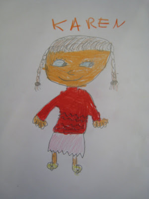 Els nens i nenes de 3r ens fan les descripcions de quina roba porten cadascun dels seus personatges.
