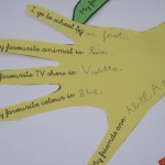 Durant els primers dies de curs els nens i nenes de segon van repassar vocabulari tot parlant d’ells mateixos alhora que completaven la seva mà. Després entre tots havíem d’endevinar de quin nen o nena era cada mà. Molt divertit!!!