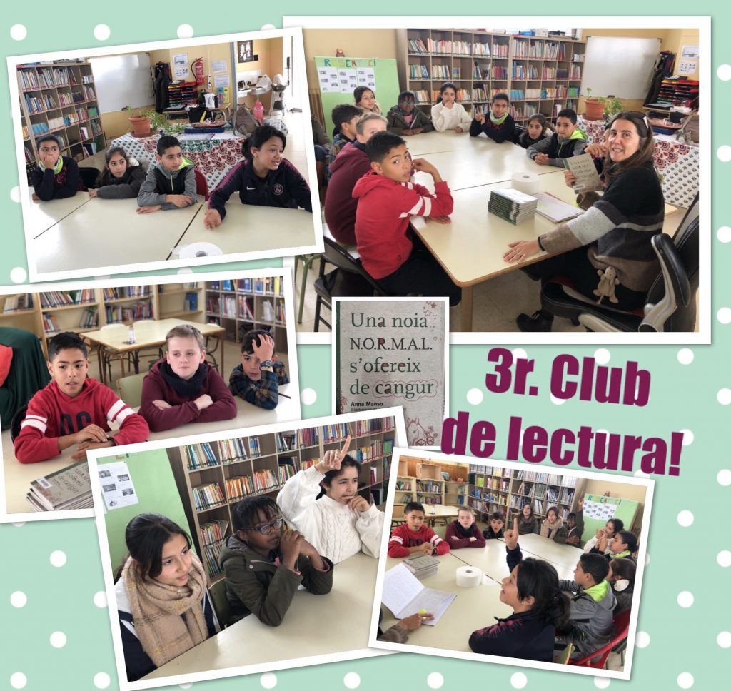 Avui els nens i nenes de cicle superior que formen part del Club de Lectura s’han trobat per comentar l’últim llibre llegit: “Una noia N.O.R.M.A.L. s’ofereix de cangur”. I és que la Ru, que té 13 anys, somia viure en un ranxo de cavalls dels Estats Units… Per guanyar diners se li acut que pot fer de cangur, de 3 bessones! Aquestes nenes són tres monstres que li faran la vida impossible… Sort que pot comptar amb el suport incondicional de la Xeila i la Nàdia, les seves dues amigues!