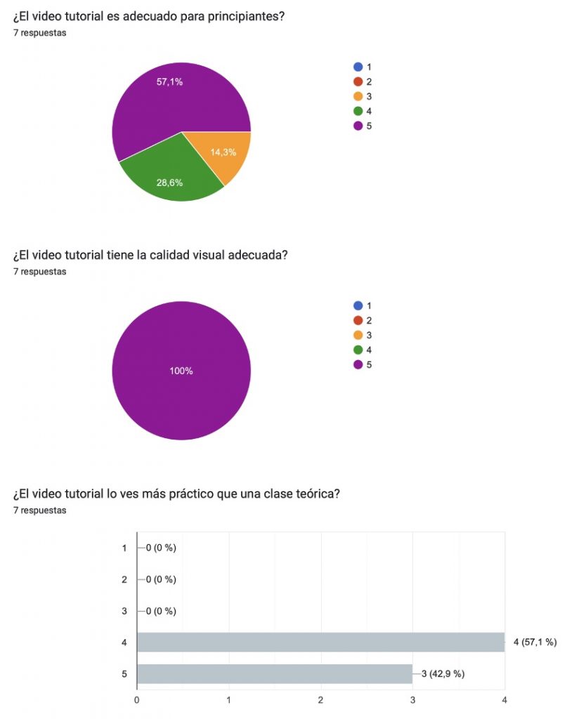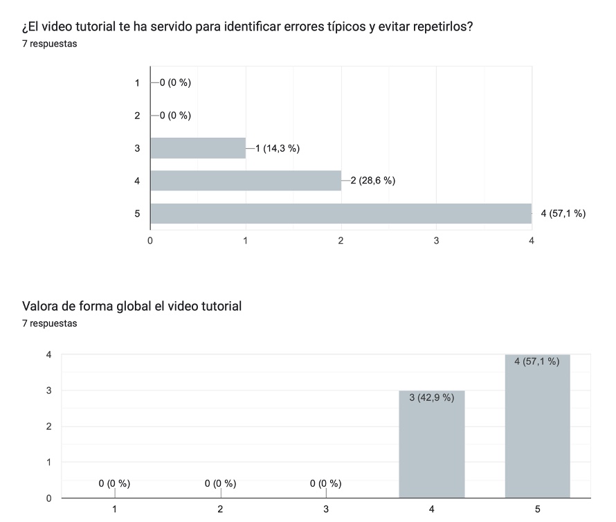 Evidencia 2 (E2). Encuesta de satisfacción anónima y en línea realizada al alumnado de la materia de programación de primero de bachillerato tras la visualización del video tutorial. Esta evidencia demuestra una tipología escrita, ya que se exponen las respuestas de los alumnos.
