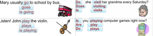 Hello my students! The best way of learning something is practising! So here you have some exercices about the present continuous and the present simple. Enjoy!!
