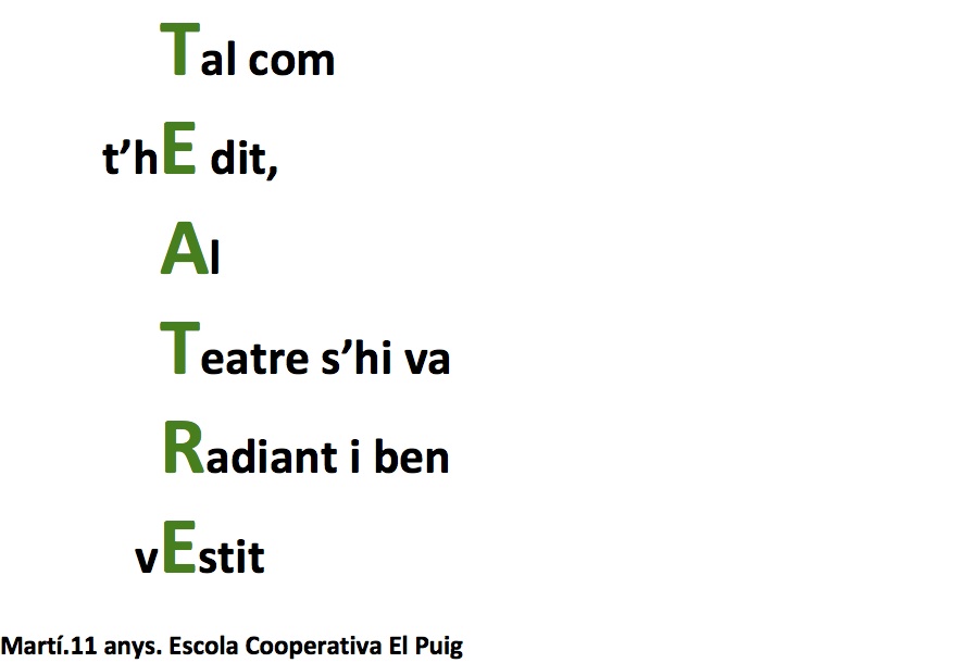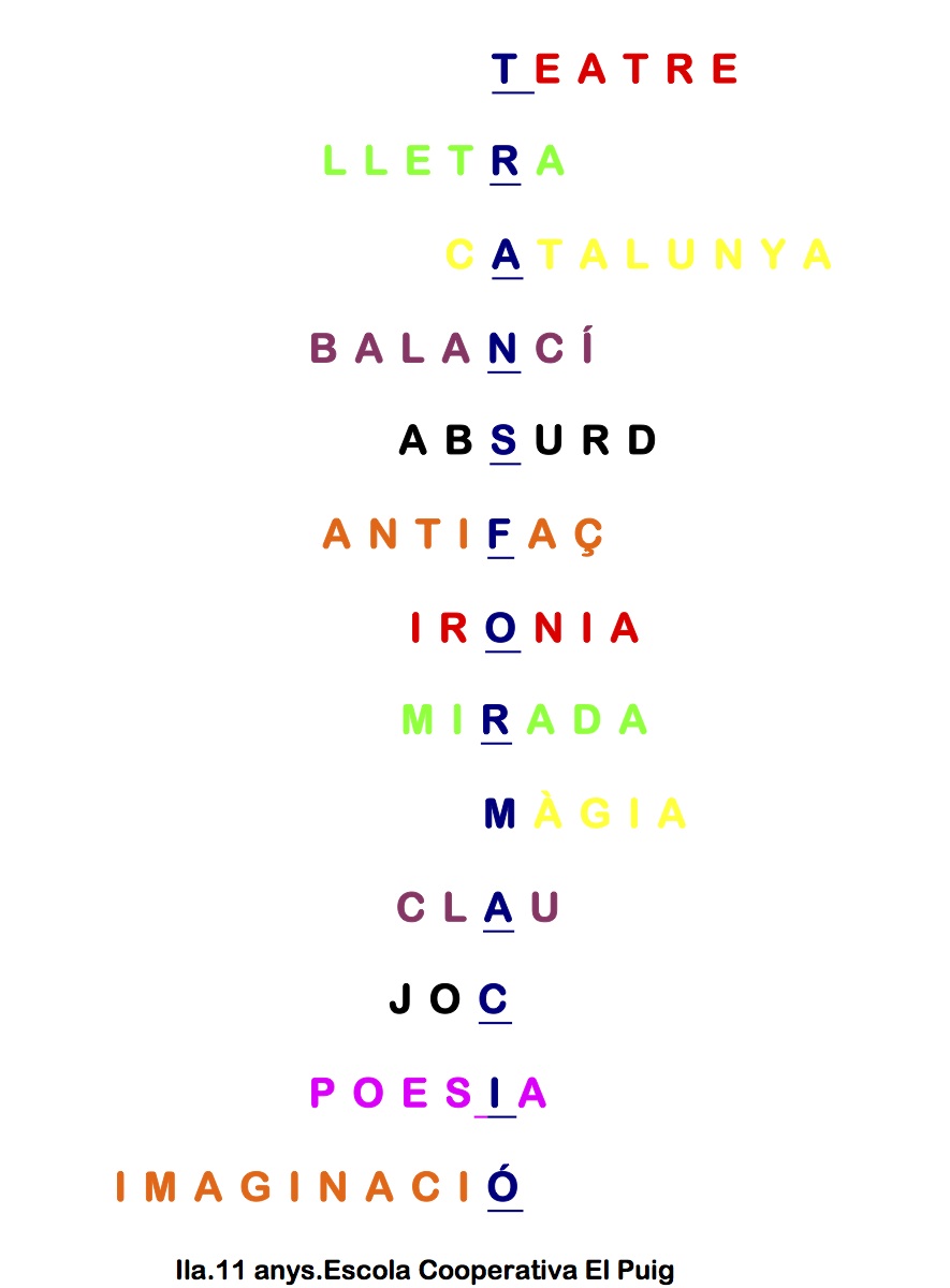 Malauradament en Joan Brossa va morir fa 15 anys, caient per les escales en un accident poc afortunat. Aquest no és l’únic aniversari de l’autor, el dia 19 de gener fa 95 anys del seu naixement. A la classe del Bruixot hem seguit la proposta de la Fundació Joan Brossa que ens convocava a realitzar un acròstic cada dia del mes de gener començant pel dia 1 i acabant el dia 19.#Brossa95 Els acròstics els hem realitzat amb paraules pròpies del món brossià.