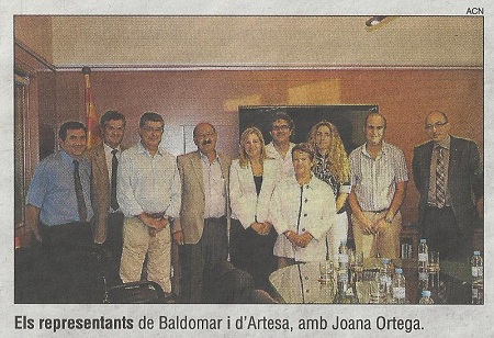 L’alcalde d’Artesa de Segre, Domènec Sabanés, i el primer tinent d’alcalde, Joan Camats, acompanyats dels representants del nucli de Baldomar, s’han reunit aquesta setmana ambla vicepresidenta i consellera de Governació i Relacions Institucionals, Joana Ortega, per començar a donar forma a l’acord de constutició d’aquest organisme. La trobada va tenir lloc el passat dimecres i s’hi va acordar que el govern de l’entitat durant aquesta legislatura serà una junta gestora, de caràcter interí, fins a les properes eleccions municipals.
