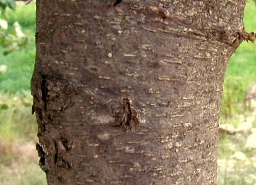 El tronc és recte. L’escorça és llisa i verdosa al principi, però esdevé marronosa i fissurada amb el pas del temps. La capçada és ampla i arrodonida.
