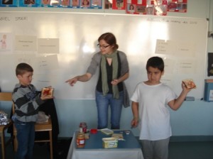 L’Helenca ens ha explicat amb què es va trobar a la nevera quan va arribar a Estats Units, al final hem tastat el típic sandvitx de crema de cacauet i melmelada de nabius.