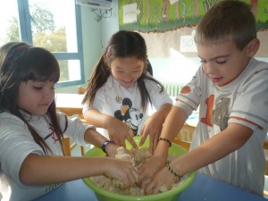 HO HEM BARREJAT MOLT BÉ I AMASSAT AMB LES MANS FINS QUE HEM ACONSEGUIT UNIR TOTS ELS INGREDIENTS EN UNA MASSA.