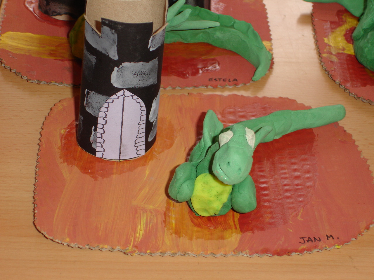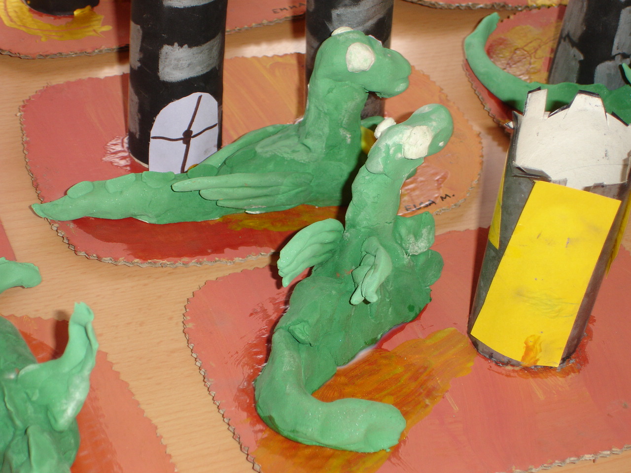 Pupils have made a CASTLE using 3D shapes ( cylinders and cones). They have also made a CLAY DRAGON to celebrate Saint George’s day.
